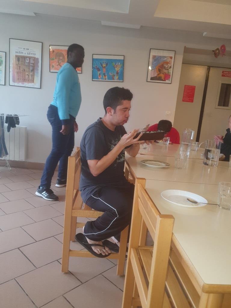 Fin de repas dans la joie et la bonne humeur pour Stéphane !