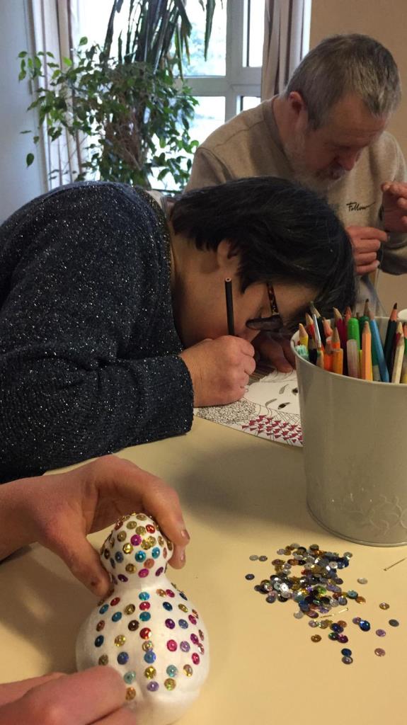 Ce matin, activité coloriage pour Anne, sequins ou perles pour Stéphane et Mehdi.