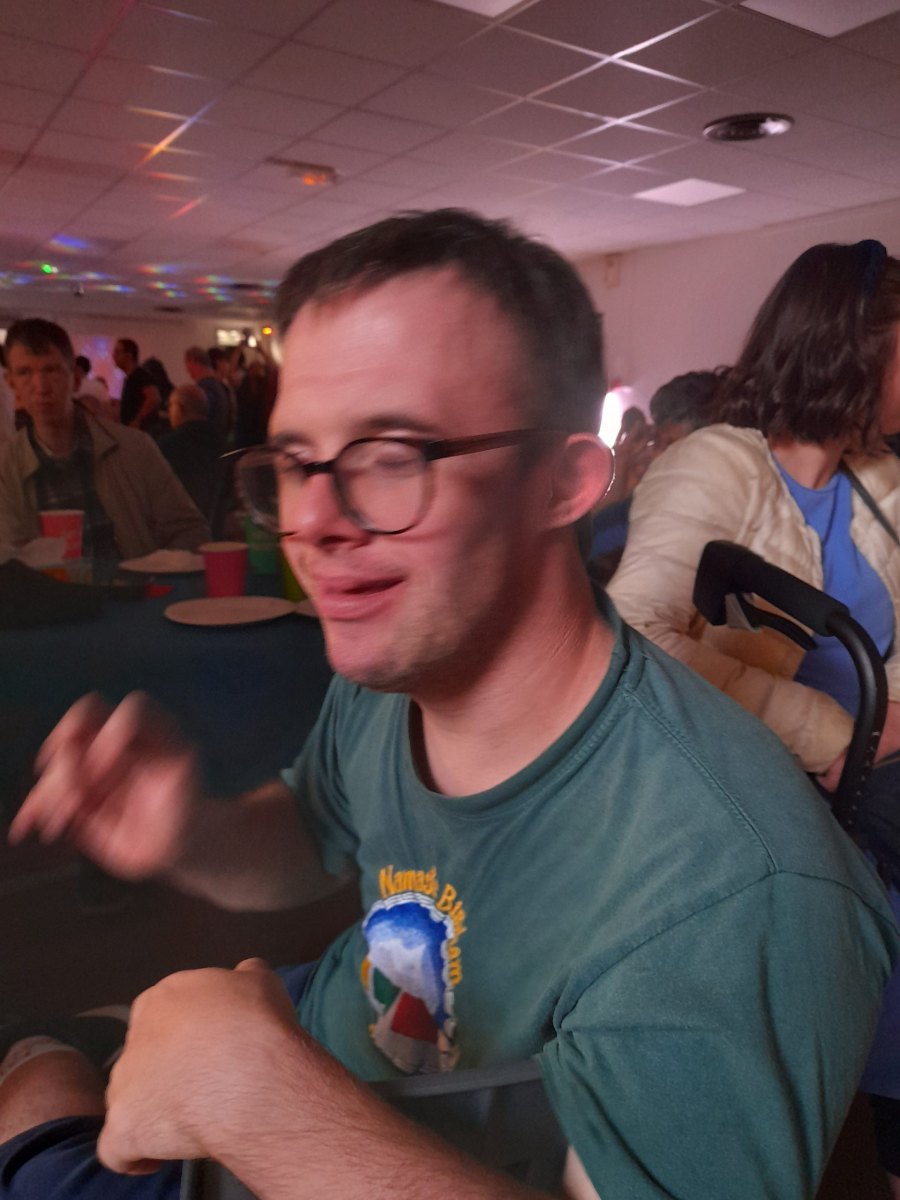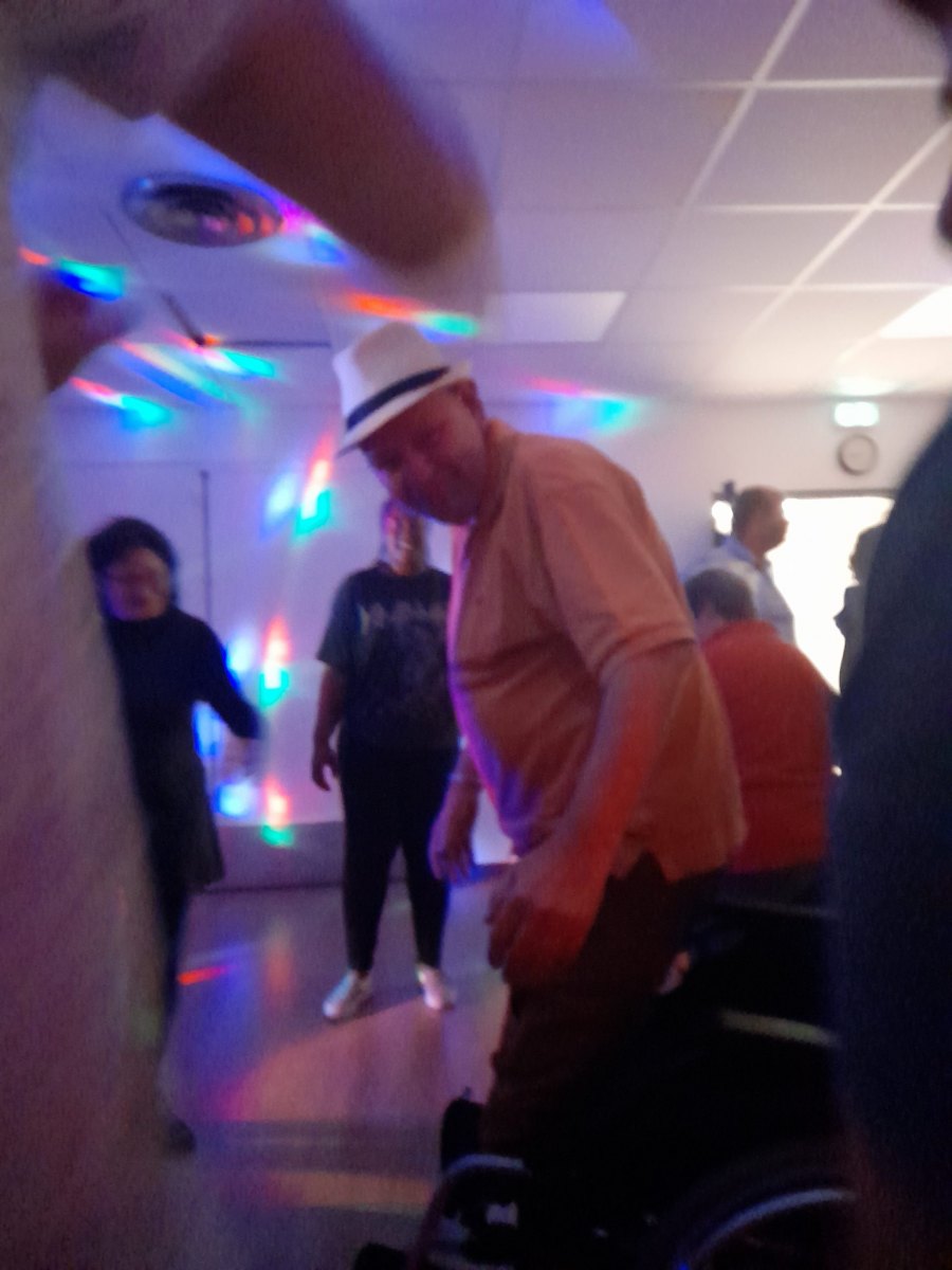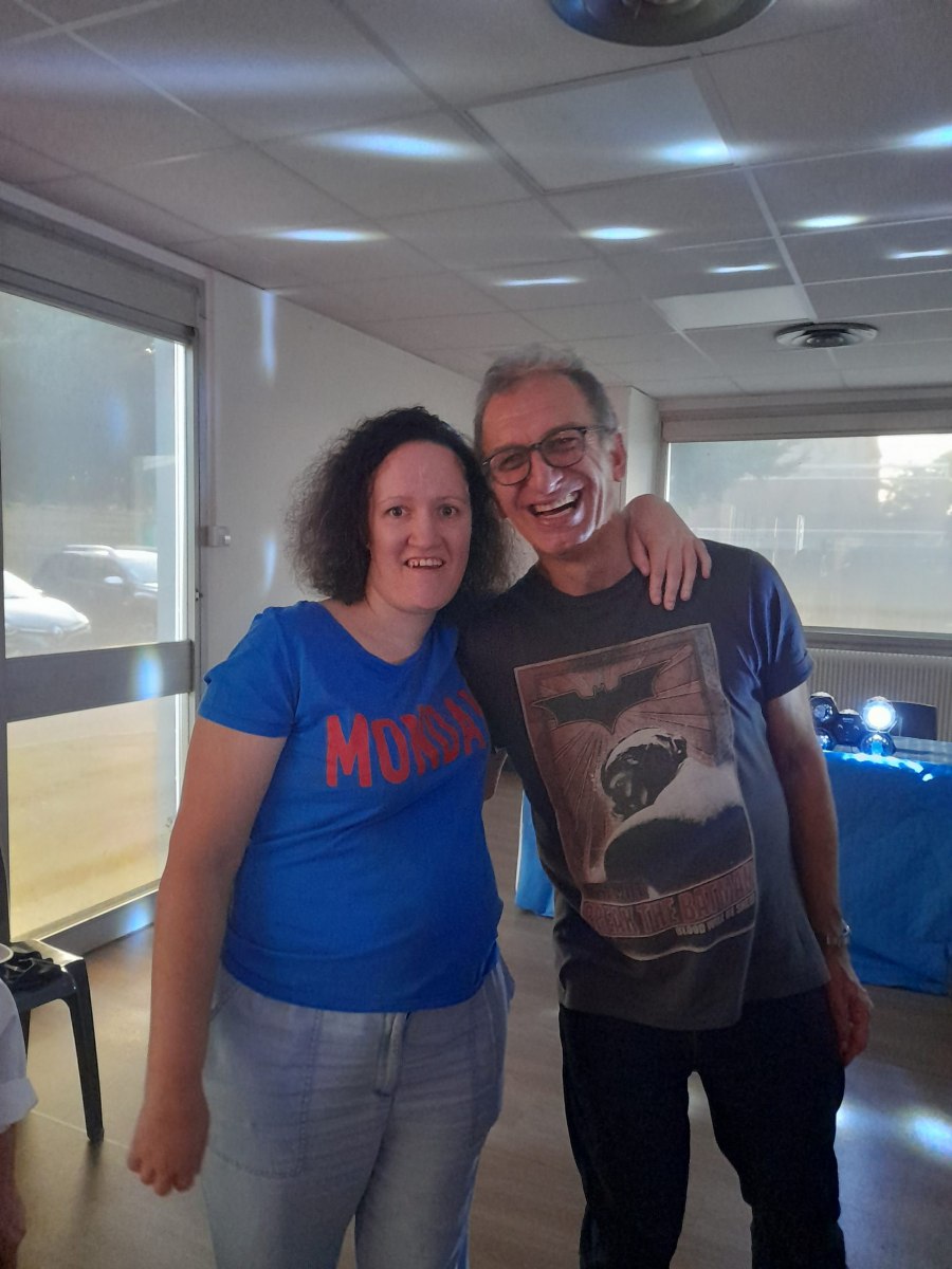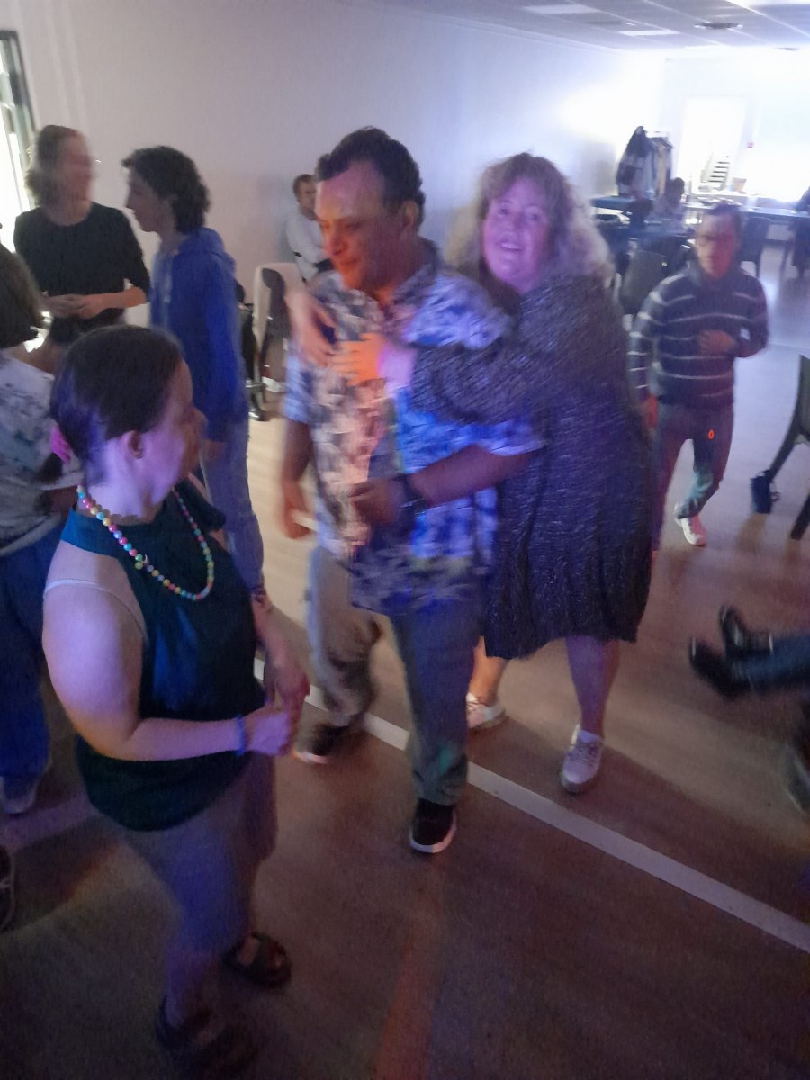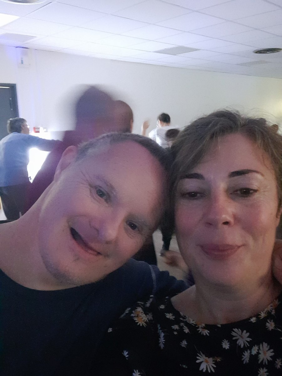 Samedi 7 octobre dès le milieu d’après-midi, la salle de restaurant du complexe Renée Le Duc était transformée en discothèque. Nous étions une centaine (résidents de l’APEI mais aussi d’autres Foyers, de travailleurs d’ESAT, des alentours) à vibrer sur la musique de nos DJ Maximilien et Adrien.