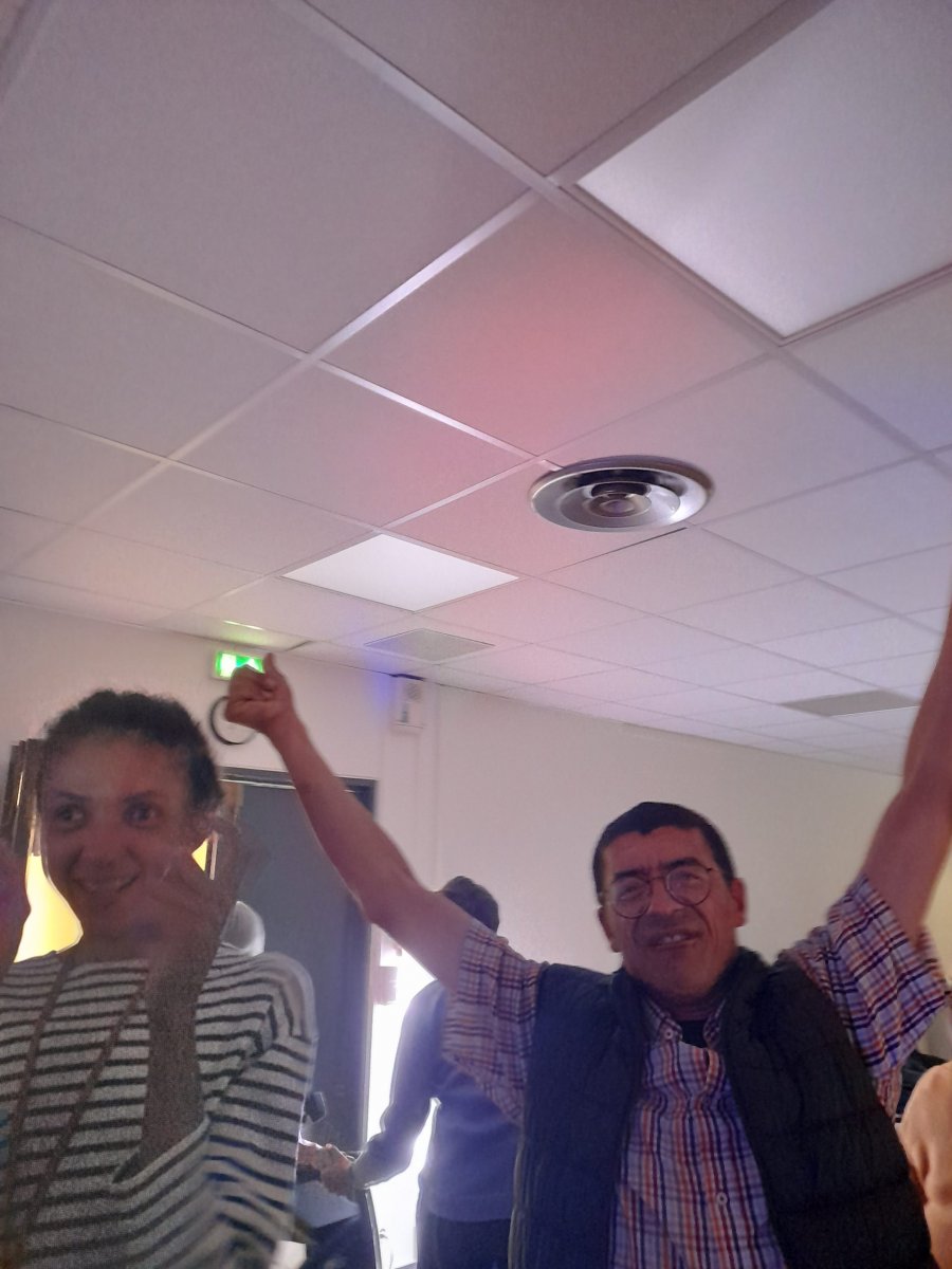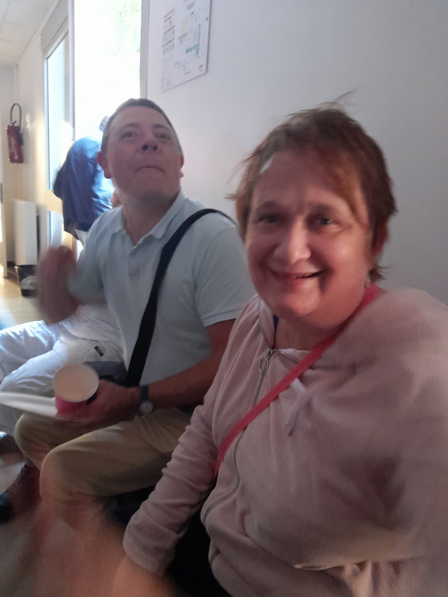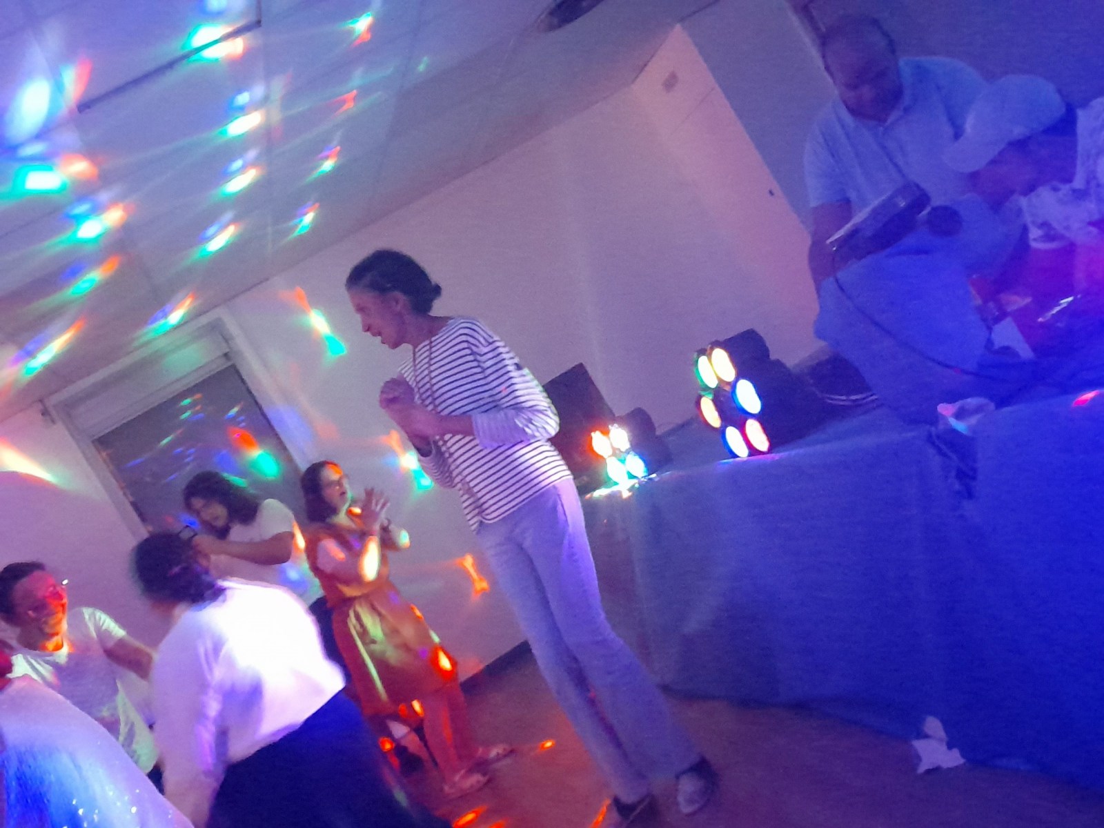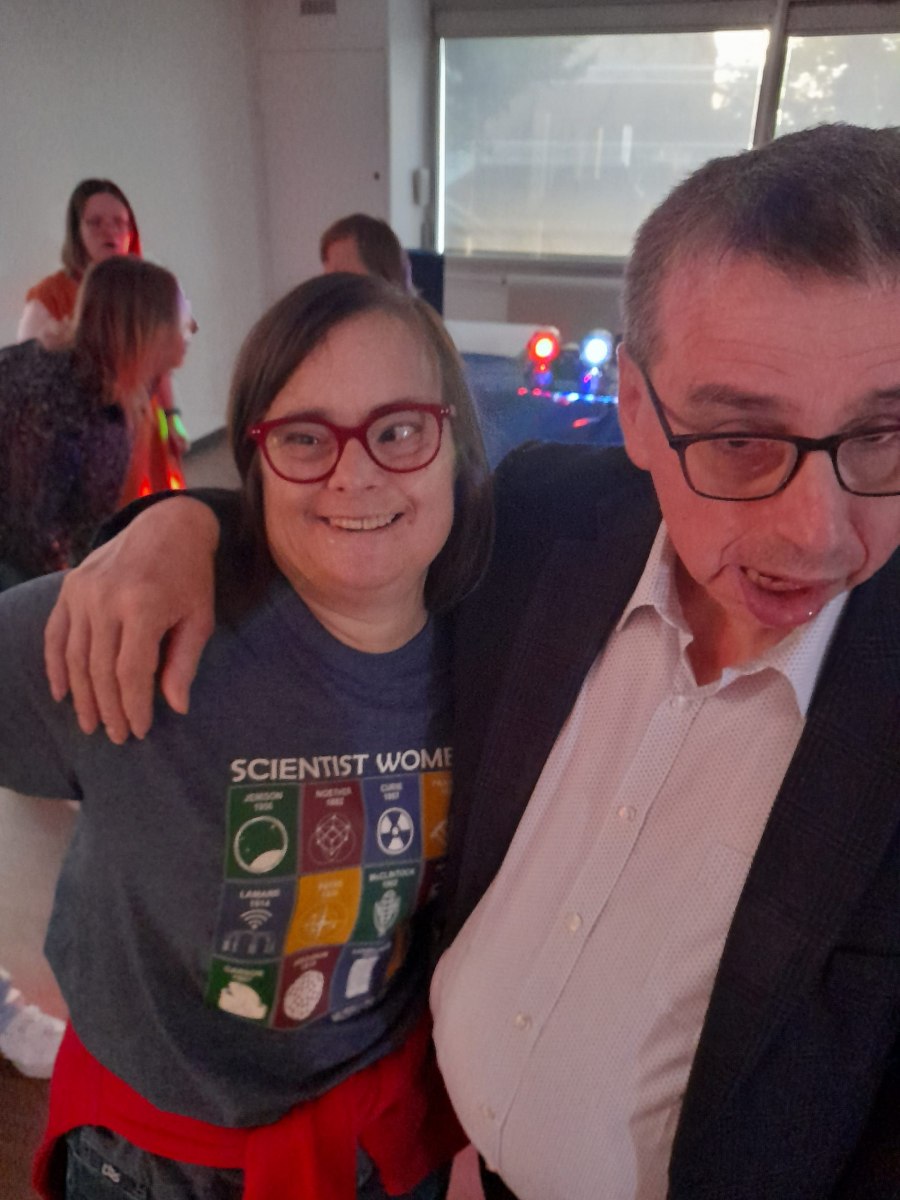 Samedi 7 octobre dès le milieu d’après-midi, la salle de restaurant du complexe Renée Le Duc était transformée en discothèque. Nous étions une centaine (résidents de l’APEI mais aussi d’autres Foyers, de travailleurs d’ESAT, des alentours) à vibrer sur la musique de nos DJ Maximilien et Adrien.
