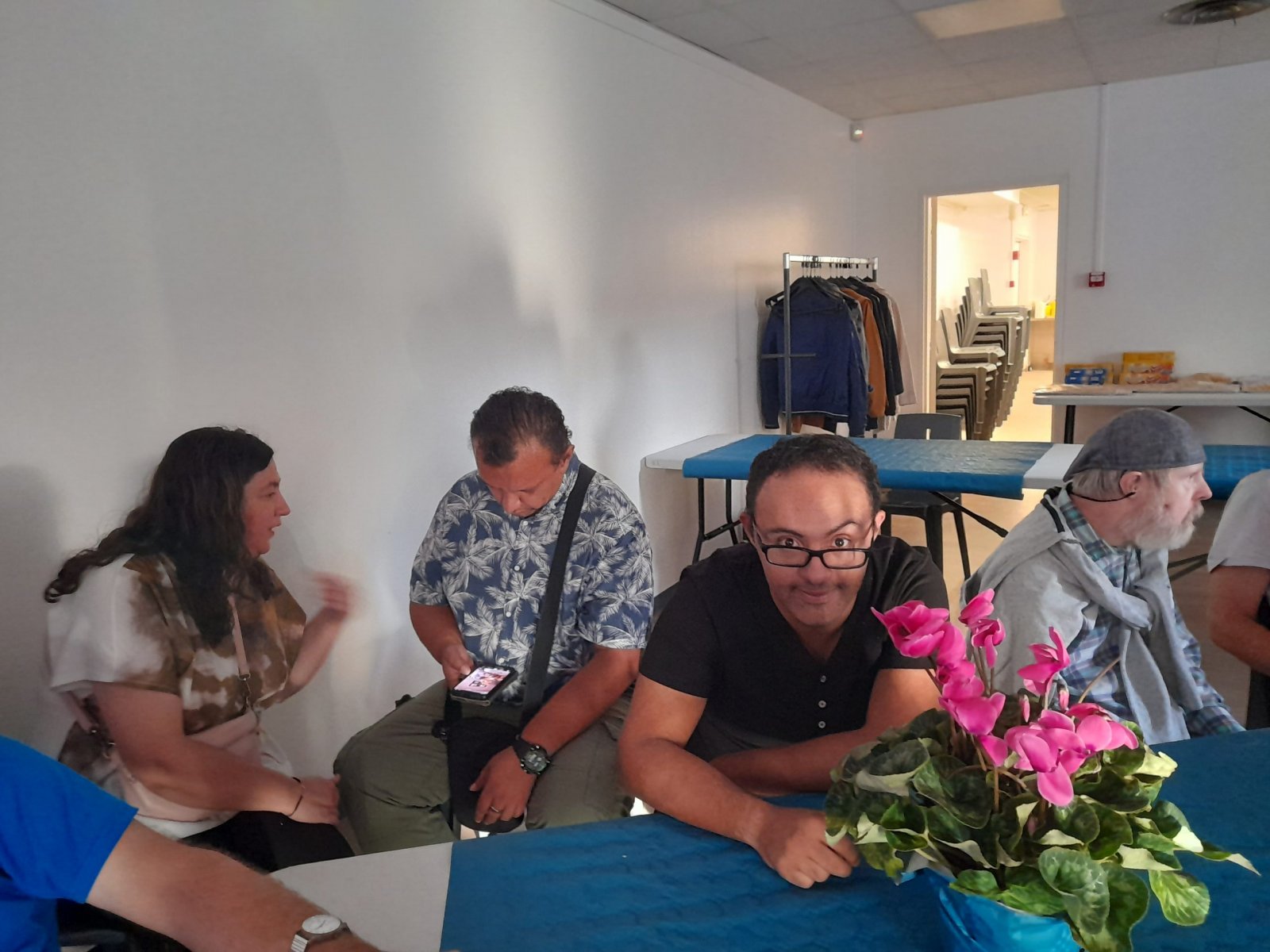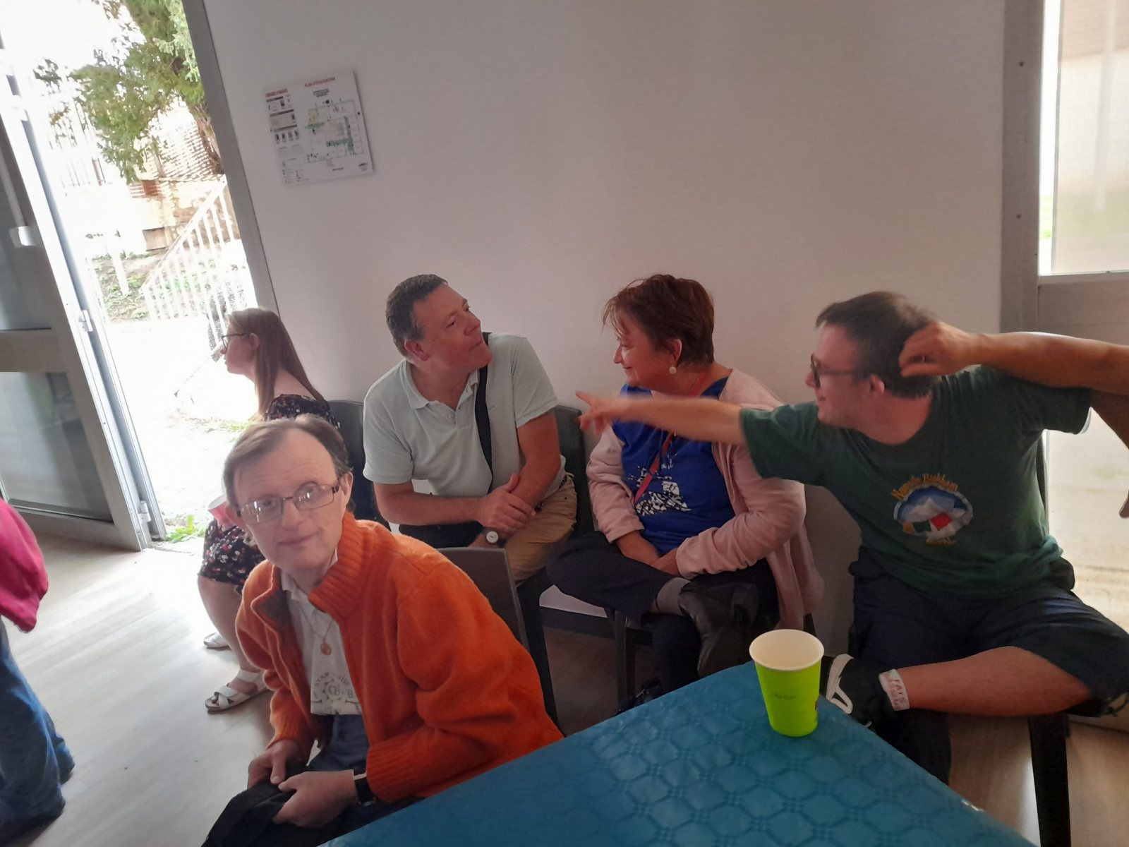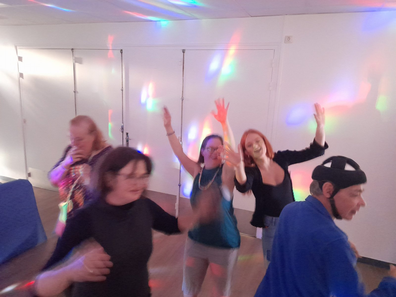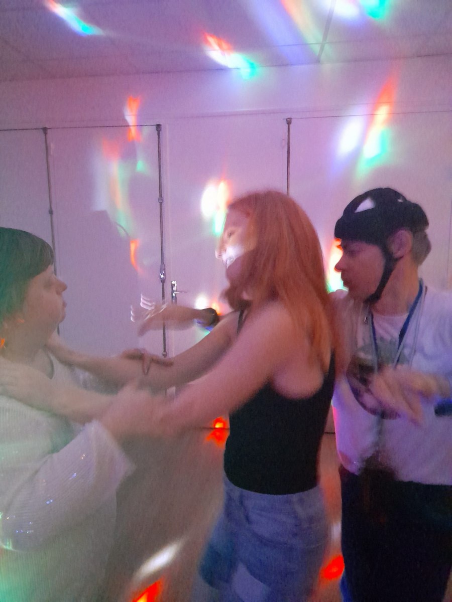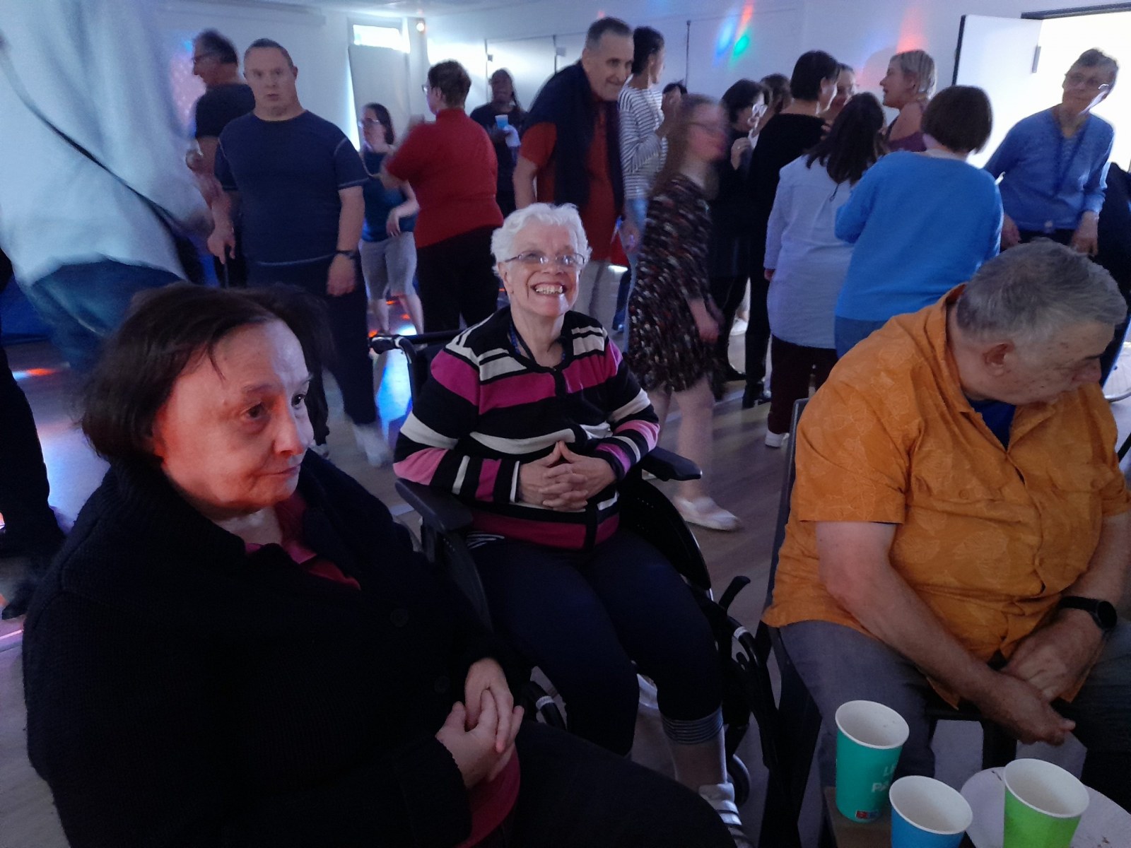 Samedi 7 octobre dès le milieu d’après-midi, la salle de restaurant du complexe Renée Le Duc était transformée en discothèque. Nous étions une centaine (résidents de l’APEI mais aussi d’autres Foyers, de travailleurs d’ESAT, des alentours) à vibrer sur la musique de nos DJ Maximilien et Adrien.