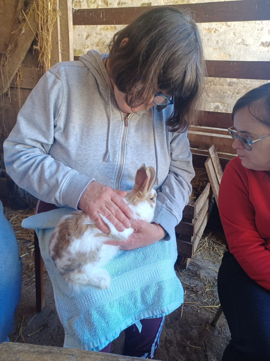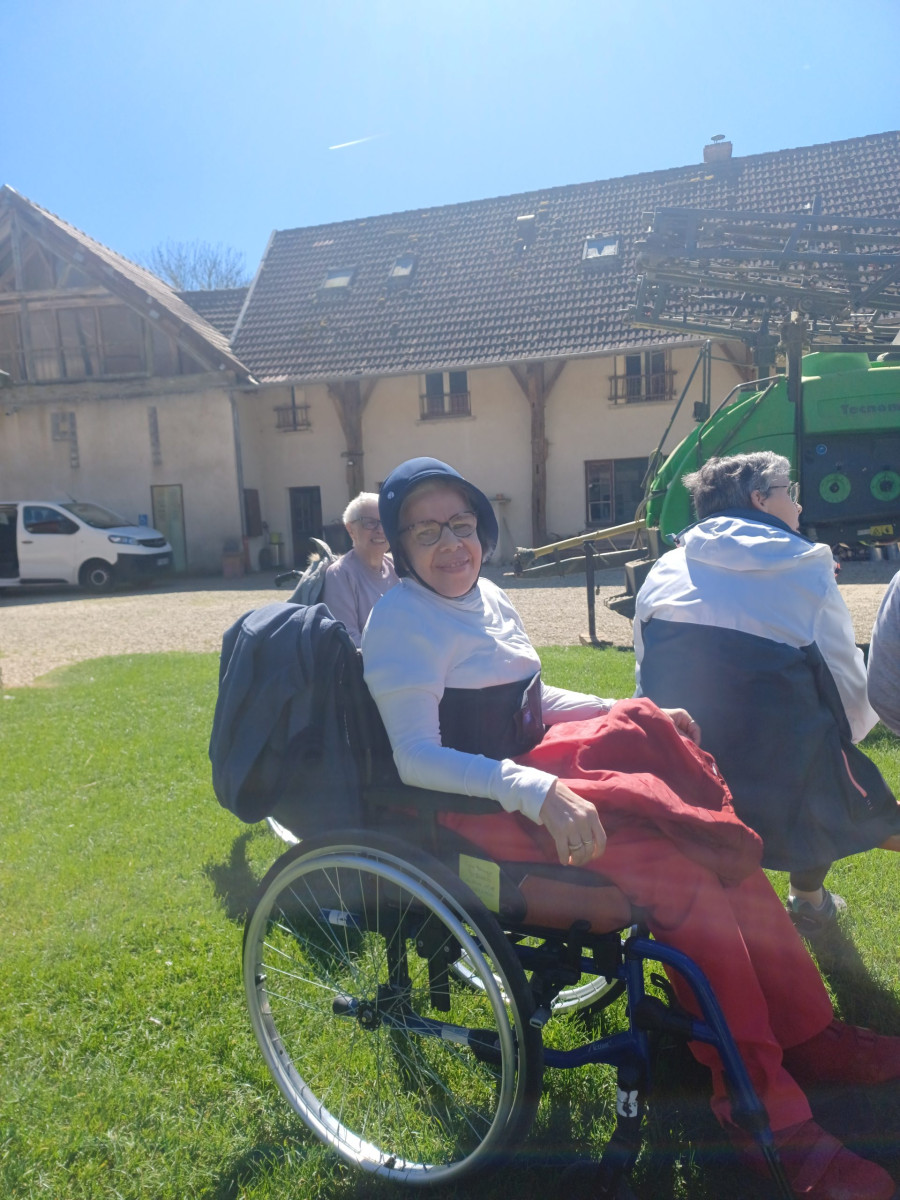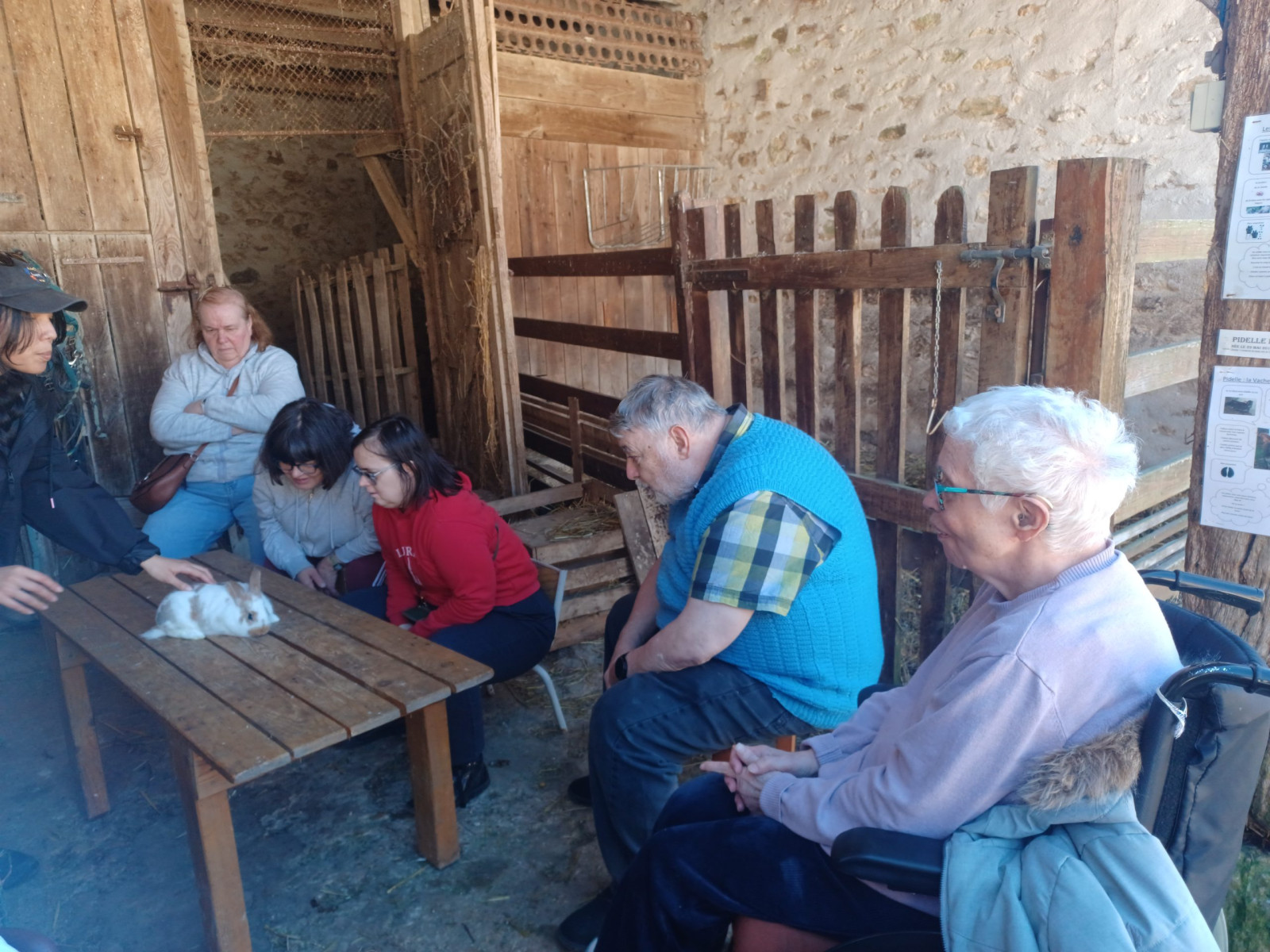 Quelques résidents et leurs deux accompagnatrices ont profité de ces premiers jours de soleil pour partir à la ferme pédagogique de la Bergerie à Cerneux (77).