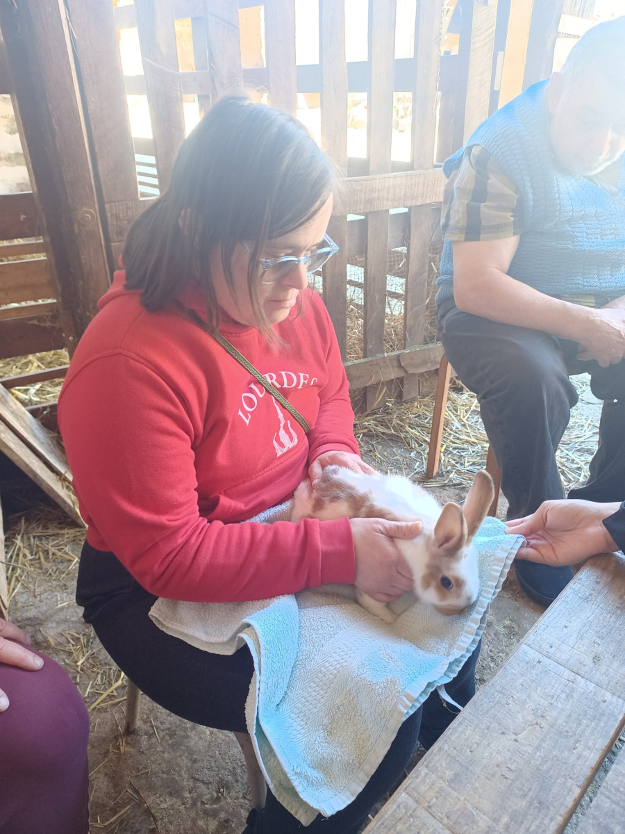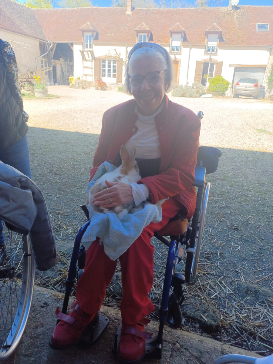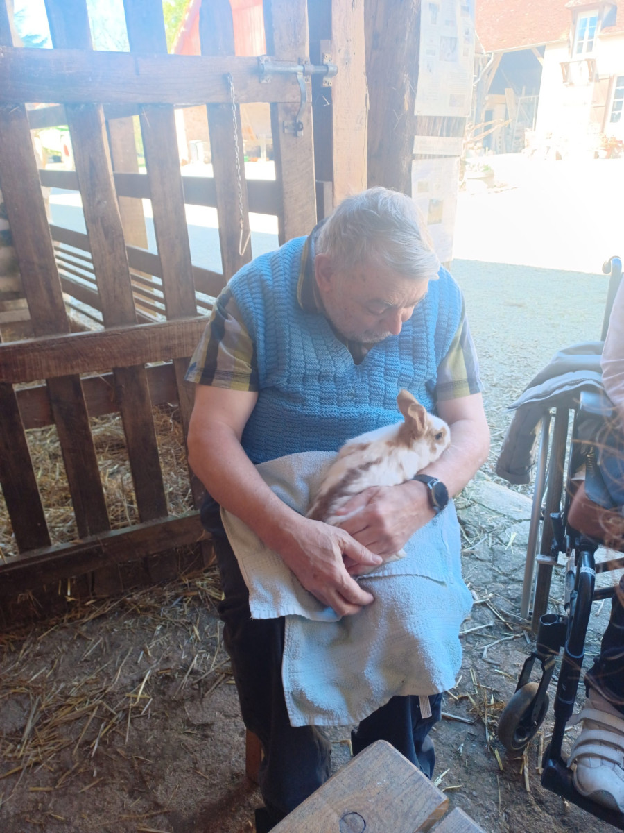 Quelques résidents et leurs deux accompagnatrices ont profité de ces premiers jours de soleil pour partir à la ferme pédagogique de la Bergerie à Cerneux (77).